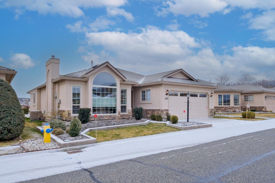 Beautifully fully renovated home located in one of the best locations of the development with every convenience for comfortable living. A very modern and comfortable design with open floor plan, lots of natural light, vaulted ceiling and skylights, distressed fir flooring through main living areas and distressed tile in kitchen and hallway. Gourmet kitchen with induction stove, stylish front edge sink and hood fan, a huge penisula with tons of counter top space for prep work and entertaining. The primary bedroom backs onto the waterspace and has a spacious w/i closet with lots of storage. A barn door leads to the ensuite which has the most stunning tiling and fixtures, fabulous shower, double sinks, lots functional counter space and storage. A convenient second bedroom or office has a generous window and lots of natural light. The cozy family room has a new high efficiency fireplace and backs onto the waterway. There is great storage and a functional laundry in from the garage. Plus, the garage has a new electric vehicle charger. Extra upgrades include freshly paint, new garage door, new awning and out door fan over recently extended patio. The complex is well organized, has great amenities with pool, hot tub and meeting areas. This is a lovely home, well cared for, spectacularly updated from head to toe and ready for a new owner to move in and enjoy the best of living in the Okanagan.