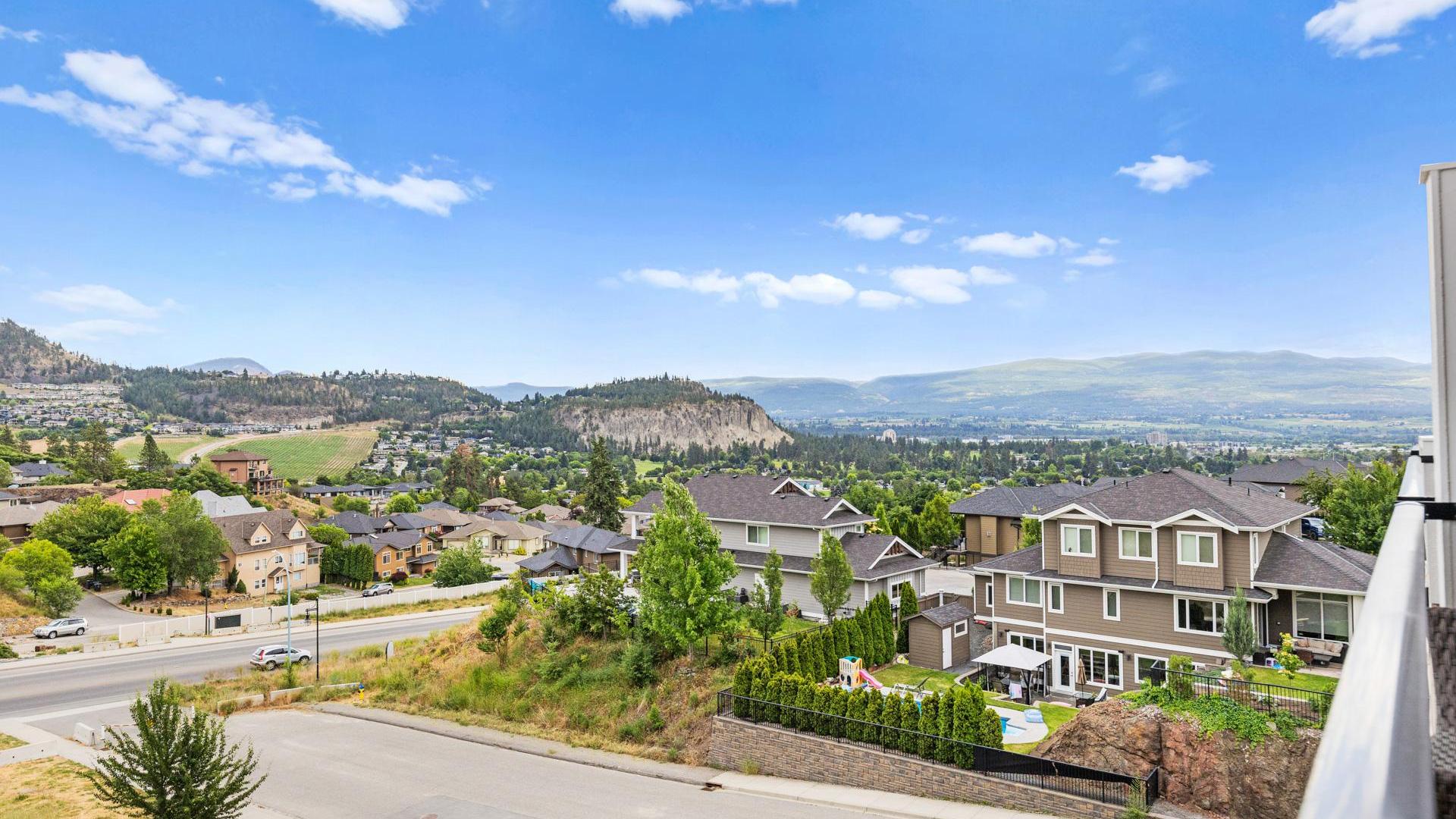 Enjoy stunning mountain and city views from this bright, contemporary top-floor 2-bedroom townhome. Step inside to an airy open-concept layout perfectly designed for comfortable living and entertaining. The expansive primary bedroom easily accommodates a king-sized bed with room to spare for a cozy reading nook or home office setup. The versatile second bedroom is perfect for guests, a den, or an office. Enjoy the stylish kitchen with modern cabinetry, quartz countertops, and stainless steel appliances, seamlessly flowing into the living and dining areas — ideal for both relaxing and entertaining. Large windows fill the home with natural light, while the east-facing deck provides the perfect spot to savour morning sunrises and shaded afternoons. This energy-efficient home comes equipped with roughed-in solar panels to help lower utility costs. Additional highlights include in-suite laundry, ample storage, and quality finishes throughout. Located minutes from Knox Mountain Park, you’ll have endless biking, hiking, and walking trails right at your doorstep. Plus, you’re just a short drive to downtown Kelowna, Okanagan Lake beaches, top-rated golf courses, restaurants, shops, and transit. Whether you're a first-time buyer, investor, or looking to downsize without compromising on lifestyle, this home is a must-see.