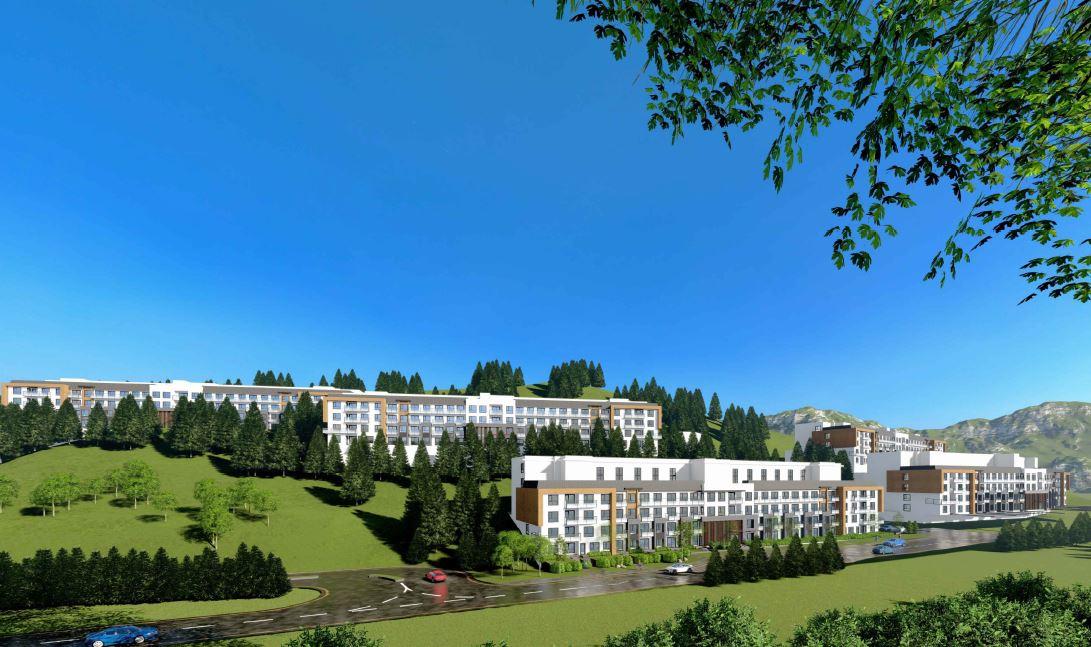 Development residential land rezoned for proposed multifamily project in West Kelowna at 2741 Auburn Road, adjacent to Constable Neil Bruce Middle School, in the Shannon Lake area. Close distance to shopping, transit, Mt. Boucherie Senior Secondary and minutes from West Kelowna’s Big Box Retail shopping. Large site is hillside and sloped with several benches suitable for new condo or rental, hybrid development. Proposed conceptual plan shows a condo-type development of 401 units in 5 buildings of 4 storeys each under the new CD10 zoning. Land area total of 30.89 acres, approx. 12 developable acres net site area, supported for multiple housing, the balance (18+ acres) designated for Parks and Natural Areas. Contact Robert Mistal for brochure, project plans, ESA, Geotech, development reports on file.